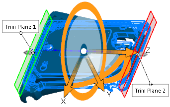 扭曲:繞三重軸的Z軸扭曲實體和曲面實體。 定位三重軸和剪裁基準面,控制扭曲的角度、位置和界限。